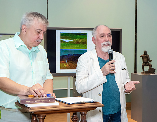 Заслуженный художник РСФСР Анатолий Легостаев также поделился воспоминаниями о многолетней дружбе с этим скромным человеком, с его удивительной способностью притягивать к себе людей, объединять здоровые творческие силы, отстаивать интересы культуры на любом уровне.