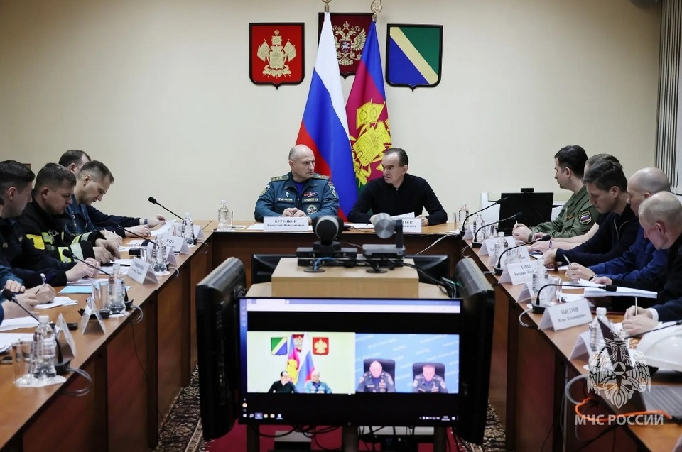 Накануне глава МЧС России Александр Куренков провел заседание оперативного штаба в Туапсе. Глава МЧС прибыл на Кубань по поручению Президента России, чтобы лично контролировать ход тушения пожаров на нефтехранилищах в городе после ударов беспилотников киевского режима. Перед началом заседания оперштаба Александр Куренков и Вениамин Кондратьев на вертолете облетели акваторию Черного моря. А уже на месте тушения пожара глава МЧС России дал поручения по дальнейшим действиям для ликвидации последствий и обеспечения безопасности.