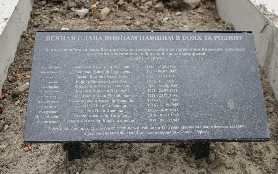Самый первый памятник погибшим здесь появился в 1948 году, когда ветераны тех событий приехали на сопку и поставили крест из виноградных кольев. А уже в 1965 году на колхозные деньги установили 11-метрового солдата Алешу. Еще через 8 лет установили памятник летчикам. Здесь также есть стела, посвященная минерам, надгробия с именами тех, кто погиб, и кого смогли идентифицировать. Это место является святым местом для россиян, как, Мамаев Курган в Волгограде или Брестская крепость в Беларуси. В сентябре Прикубанский Совет ветеранов Краснодара организовал экскурсию на «Сопку Героев». Прикубанцы ежегодно посещают это место, чтобы почтить память героев.