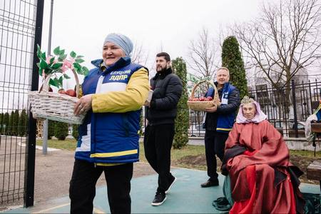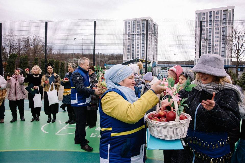 Для создания особой атмосферы и дополнительного настроения партийцы раздали гостям «молодильные яблочки» — символ здоровья и радости.