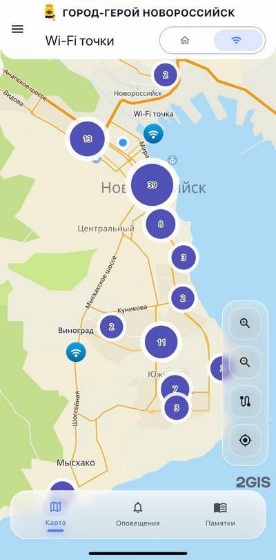 Для новороссийцев создали приложение с интерактивной картой города с обозначенными точками укрытия и точками бесплатного доступа Wi-Fi